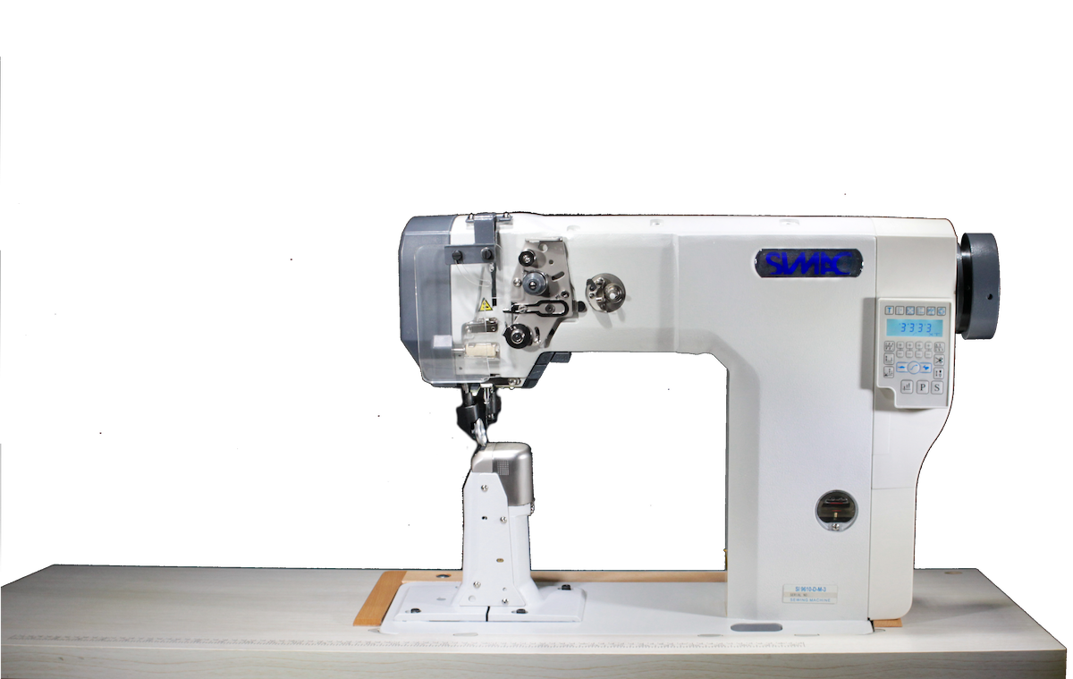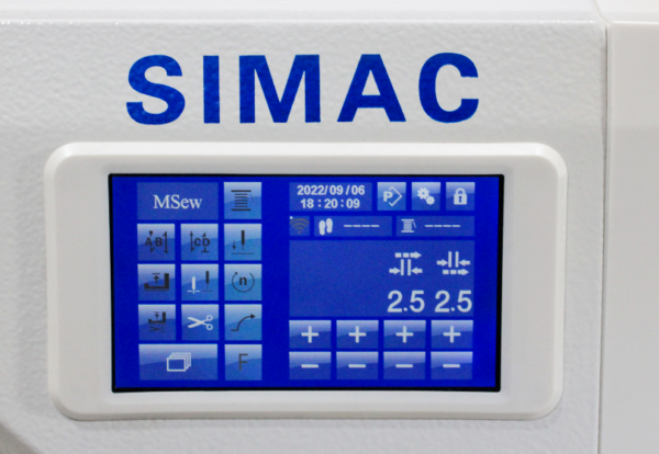 La SIMAC 9610 è una macchina a colonna con doppio trasporto: griffa rotante e piedino trascinatore.